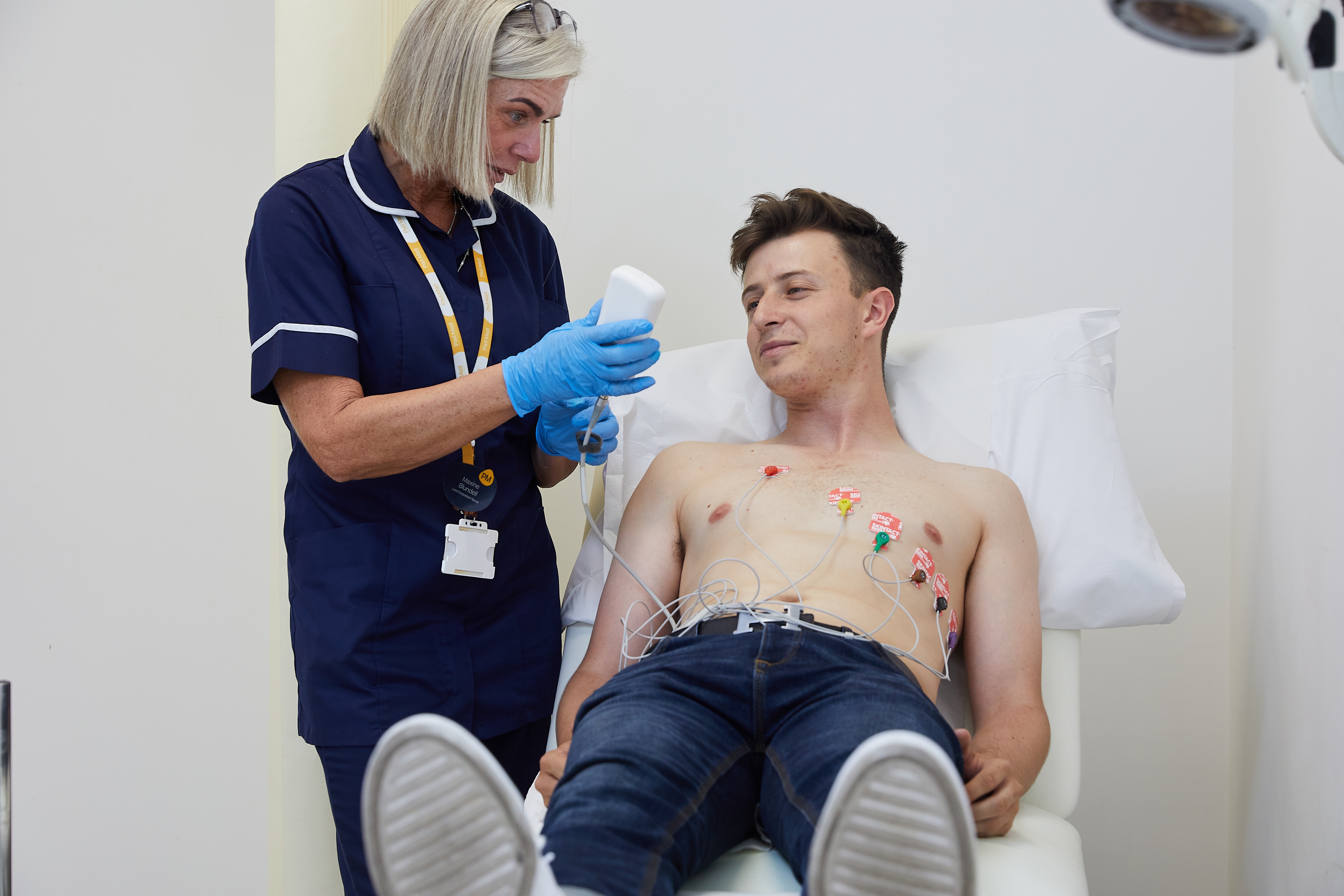 During an ECG, the heart’s electrical activity is measured through electrodes that are attached to the skin with adhesive pads. Signals recorded from your heart are displayed on a screen and can be traced out on a piece of paper. An ECG can identify problems with your heart including: